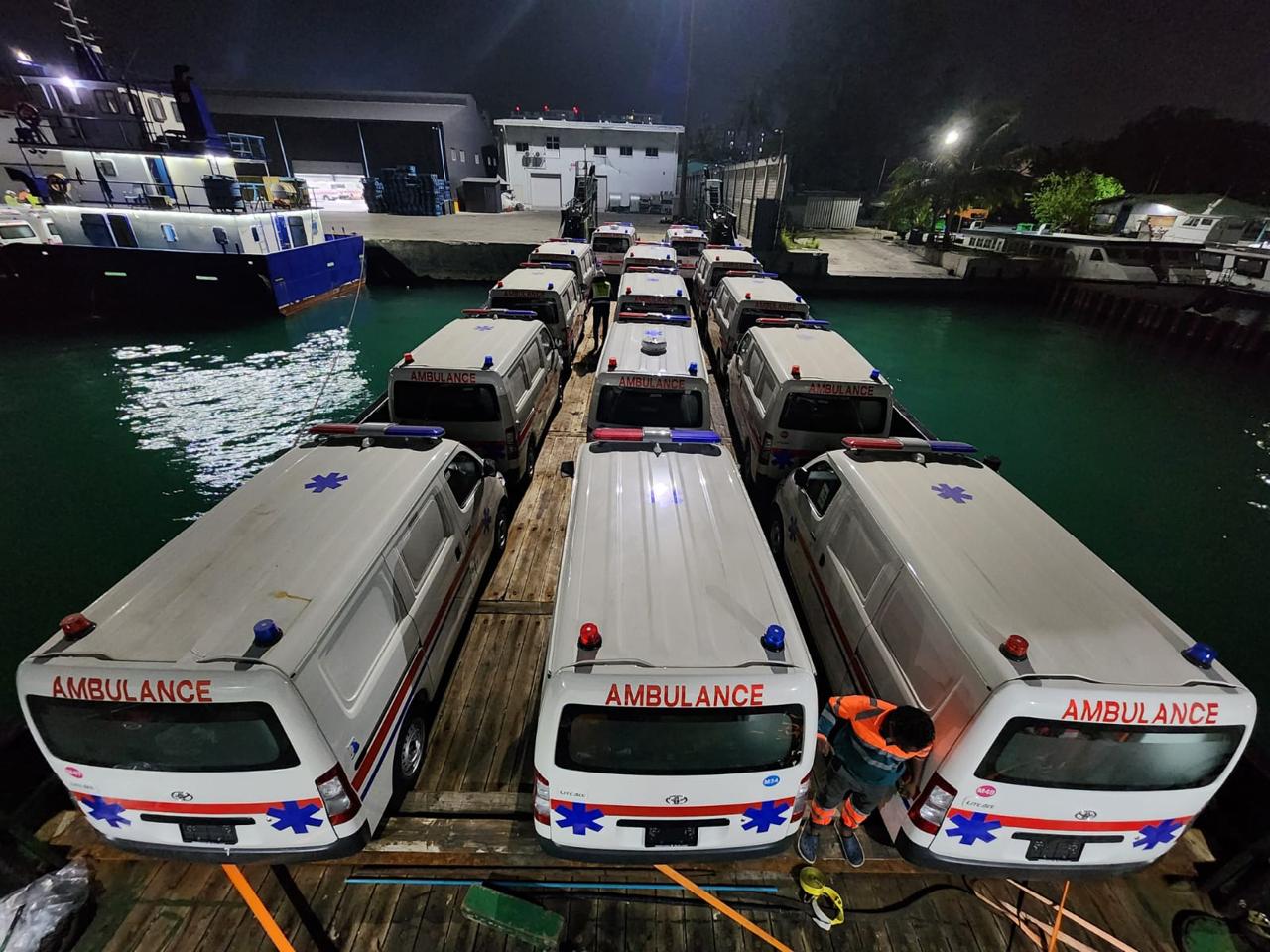 އެމްބިއުލެންސްތައް ފޯރުކޮށްދިނުމުގެ މަސައްކަތް މިދިޔަ މަހުގެ 17ވަނަ ދުވަހު ފެށިއިރު ހުރިހާ އެމްބިއުލެންސް ފޯރުކޮށްދީ ނިންމީ މި މަހުގެ 14ވަނަ ދުވަހުއެވެ.