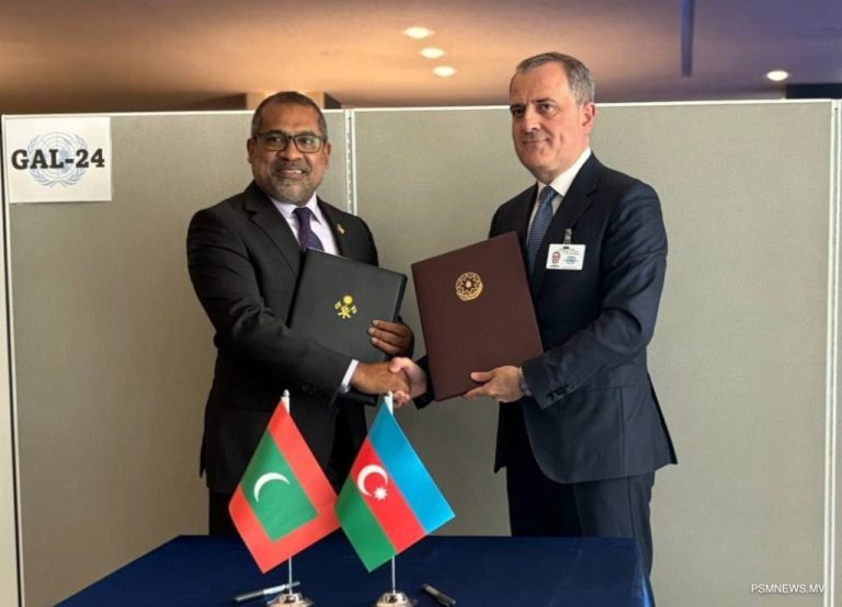 ދުރާލާ ވިސާ ނެގުމަކާއި ނުލައި ދިވެހިންނަށް އަޒަރުބައިޖާނަށް ދަތުރުކުރެވޭނެހެން ދެ ޤައުމު ދެމެދު ވިސާ ވެއިވަރ އެއްބަސްވުމެއްގައި ސޮއިކޮށްފިއެވެ.