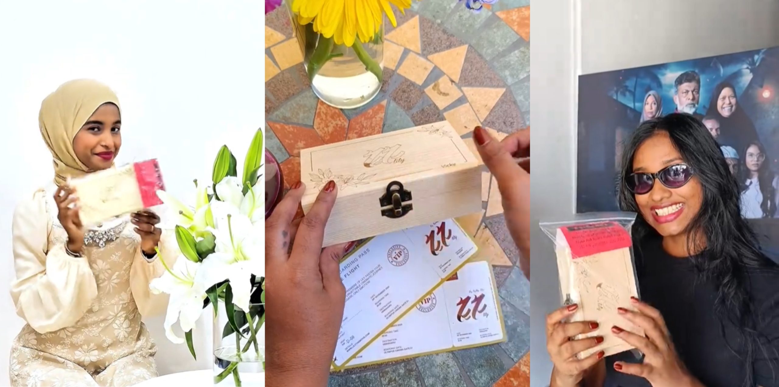 ލިލީގެ ޕްރެމިއާ ޝޯގެ ޓިކެޓު ހިމެނޭ މި ފޮށީގެ ބޭރުގައި ވަރަށް ރީތި ފޮންޓަކުން ލިލީގެ ނަން ކަނޑައި ނަގާފައި ވެއެވެ. އޭގެ އިތުރުން އެ ފޮށީގެ ބޭރުގައި ދަޢުވަތު ލިބޭ މީހާގެ ނަމާއި ލިލީ މަލެއް ވެސް ވަރަށް ރީތި ފަރުމާ އަކުން ކަނޑާނަގާފައިވެއެވެ.