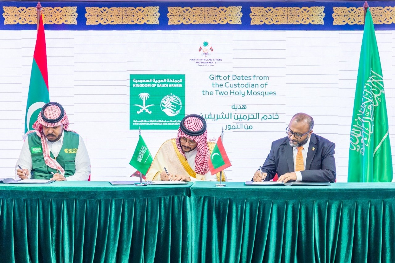 تشرَّفنا اليوم، وبمشاركة سعادة سفير خادم الحرمين الشريفين لدى جمهورية المالديف الأستاذ يحيى بن حسن القحطاني، وممثلٍ عن مركز الملك سلمان للإغاثة والأعمال الإنسانية، باستلام هدية التمور الفاخرة المقدَّمة من خادم الحرمين الشريفين الملك سلمان بن عبد العزيز آل سعود إلى الشعب… pic.twitter.com/eDX2z3fwqI