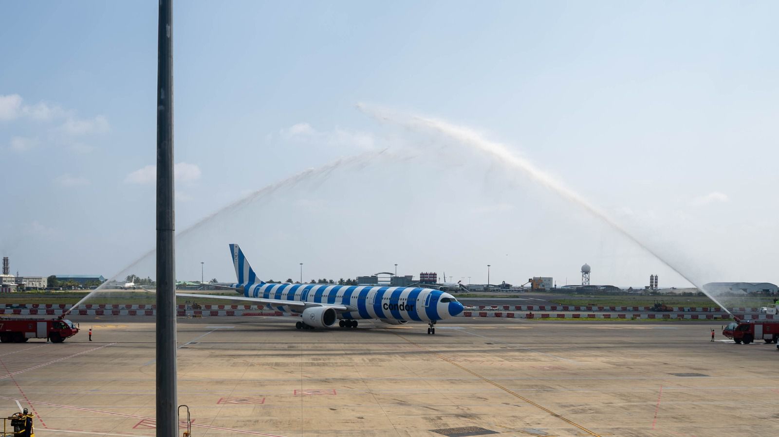ވެލާނާ އިންޓަނޭޝަަލް އެއާޕޯޓުގައި މިއަދު ވަނީ ކޮންޑޯގެ ދަތުރު ފެށުމުގެ ގޮތުން ހާއްސަ ހަފުލާއެއް ބާއްވާފަ އެވެ. މި ބޯޓު ޖެއްސުމާއެކު ވޯޓާ ސެލިއުޓެއް ދީފައިވެއެވެ.